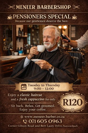 Experience luxury hair care with a grooming experience tailored to your needs at the finest barber in Boksburg.